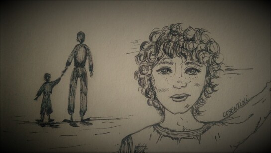 La loro vita si svolgeva tutti i giorni nella polvere della strada e persino a sera tarda, dopo aver consumato la simbolica cena, fatta di pane e fantasia, continuavano a giocare nei vicoli bui del paese, popolati di ombre e di mistero.