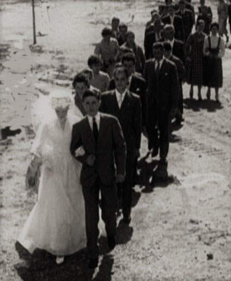 Il prete del paese celebrò la messa in una cappella di campagna vicino al casolare del suocero di Pasquale, tutti si commossero e infine in corteo si diressero verso il banchetto nuziale.